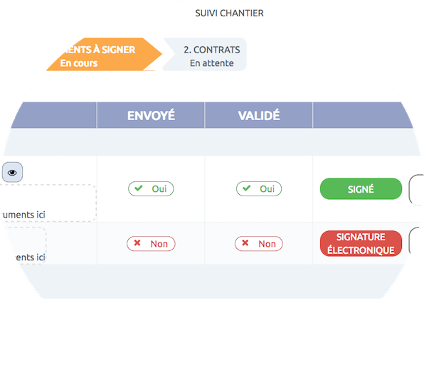 - le client complète les tableaux dynamiques des intervenants techniques et travaux